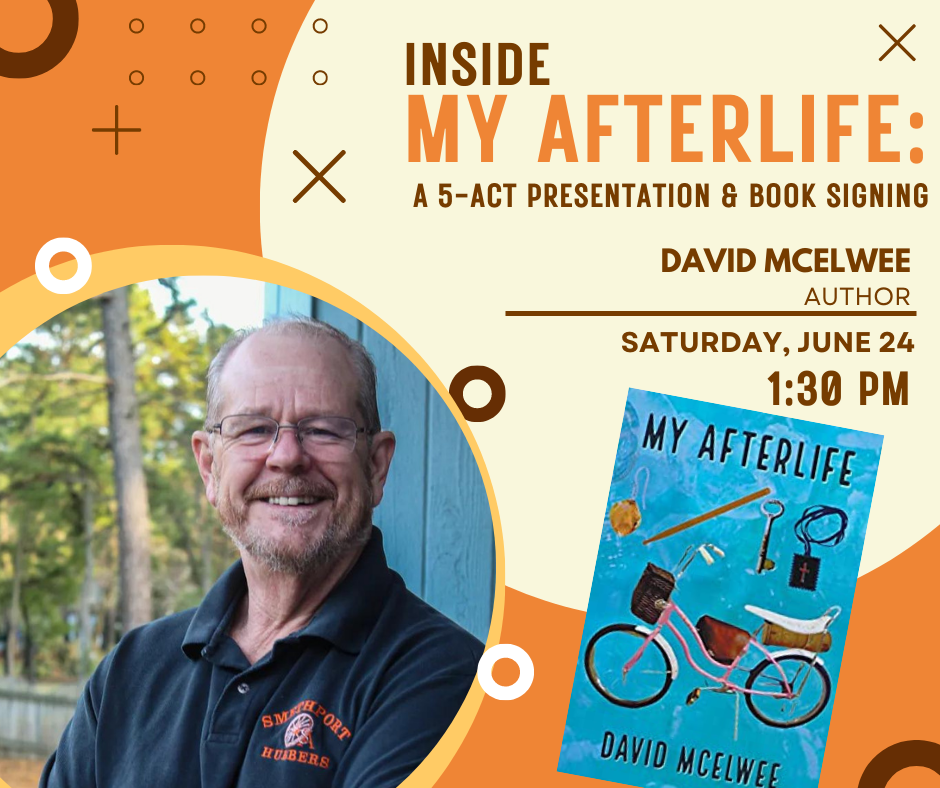 Light refreshments will be available as well as a few copies of McElwee’s book, My Afterlife for purchase.