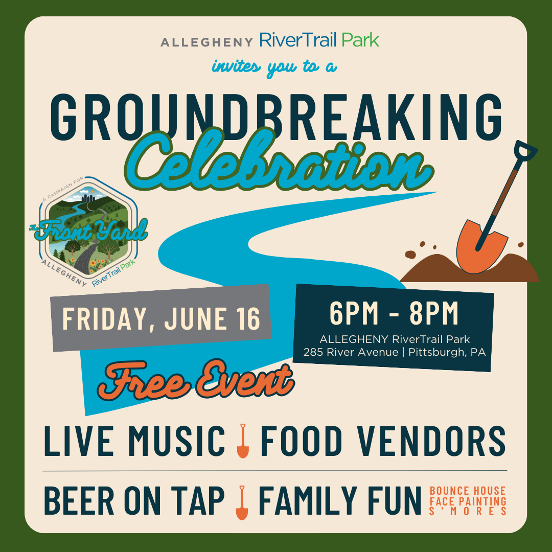 Allegheny River Trail Park invites you to Groundbreaking celebration. Free Event with live music, food vendors, beer on tap, face painting and more.