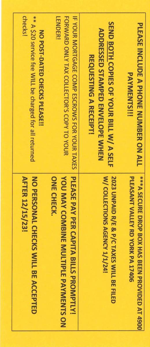 Contact Elizabeth Adcock, Tax Collector, for more information at 717-751-6910
