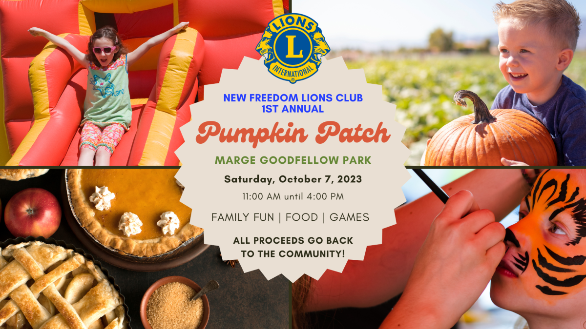 The New Freedom Lions Club's 1st Annual Pumpkin Patch is here! Join us for a fun-filled, family-friendly event where you can find the perfect pumpkins and beautiful homemade wooden decor. But that's not all – there's a lot more in store: