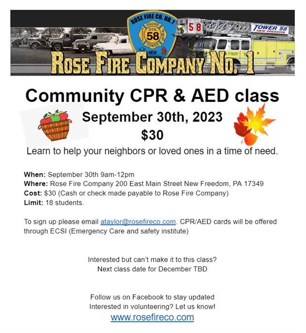 To sign up, please email ataylor@rosefireco.com