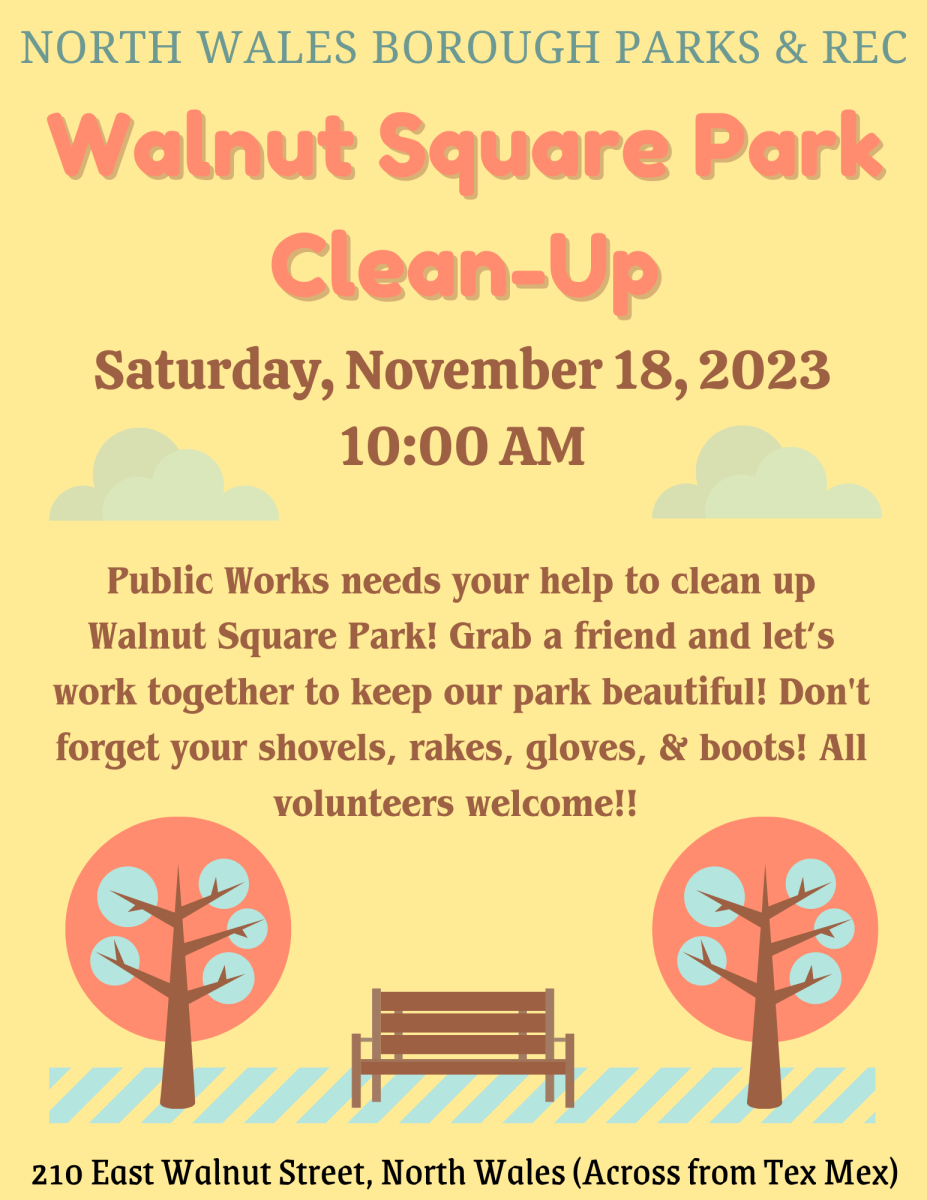North Wales Borough Parks & Rec and Public Works are asking for volunteers to help clean up Walnut Square Park! Grab a friend and let's work together to keep our park beautiful. Don't forget your shovels, rakes, gloves and boots.