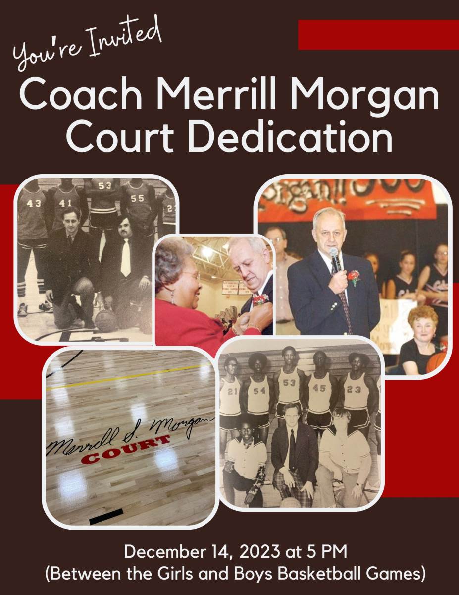 This summer, the CRHS gym got a beautiful update with legendary Coach Merrill Morgan's signature on it! Please come join his family in celebrating with a special dedication on December 14th between the girls and boys basketball games (around 5 PM). Coach Morgan's former players are encouraged to attend and sign a special book for former players. If you are a former player that plans to attend, please contact Coach Plutschak at plutschak.bradley@ccpsstaff.org. All are welcome to attend!
