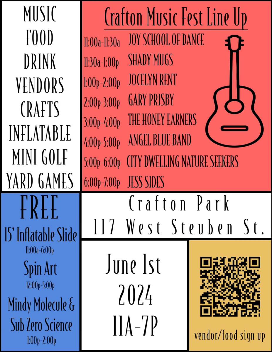 Join us for the inaugural Crafton Music Fest & Vendor Market on Saturday, June 1st at Crafton Park from 11am-7pm!