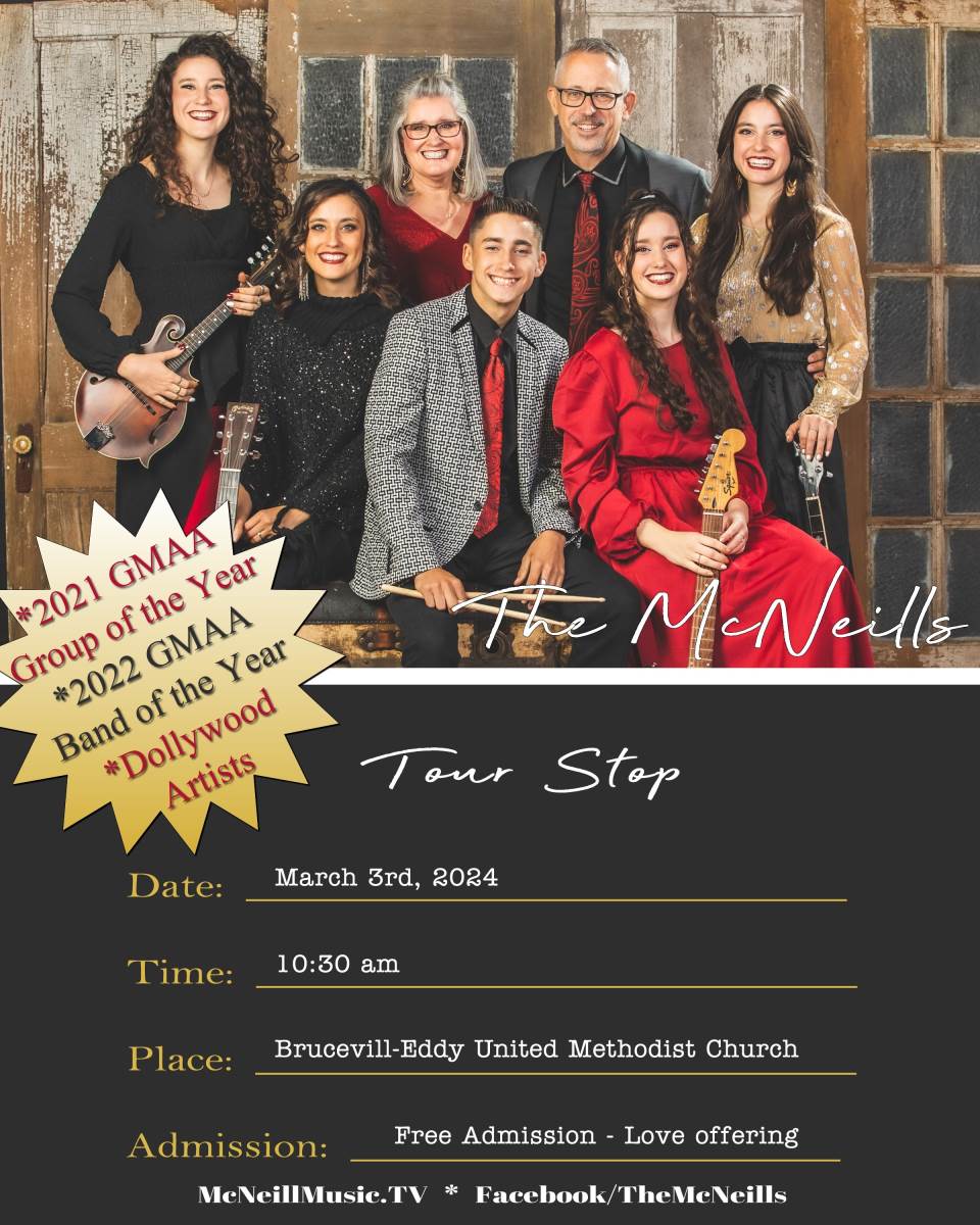 Bruceville-Eddy United Methodist Church invites the community to join them for a free concert by The McNeills!