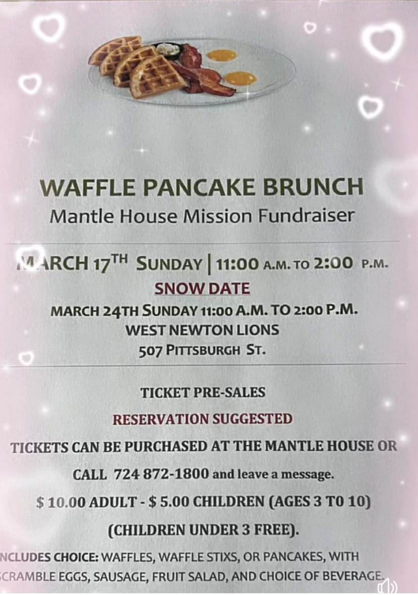 Mantle House Mission Fundraiser. Tickets can be purchased at the Mantle House or call 724-872-1800