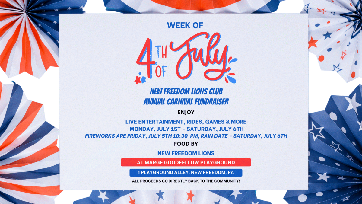 The New Freedom Lions Club is hosting its annual Carnival Fundraiser starting on Monday, July 1st at 6:00 PM!
