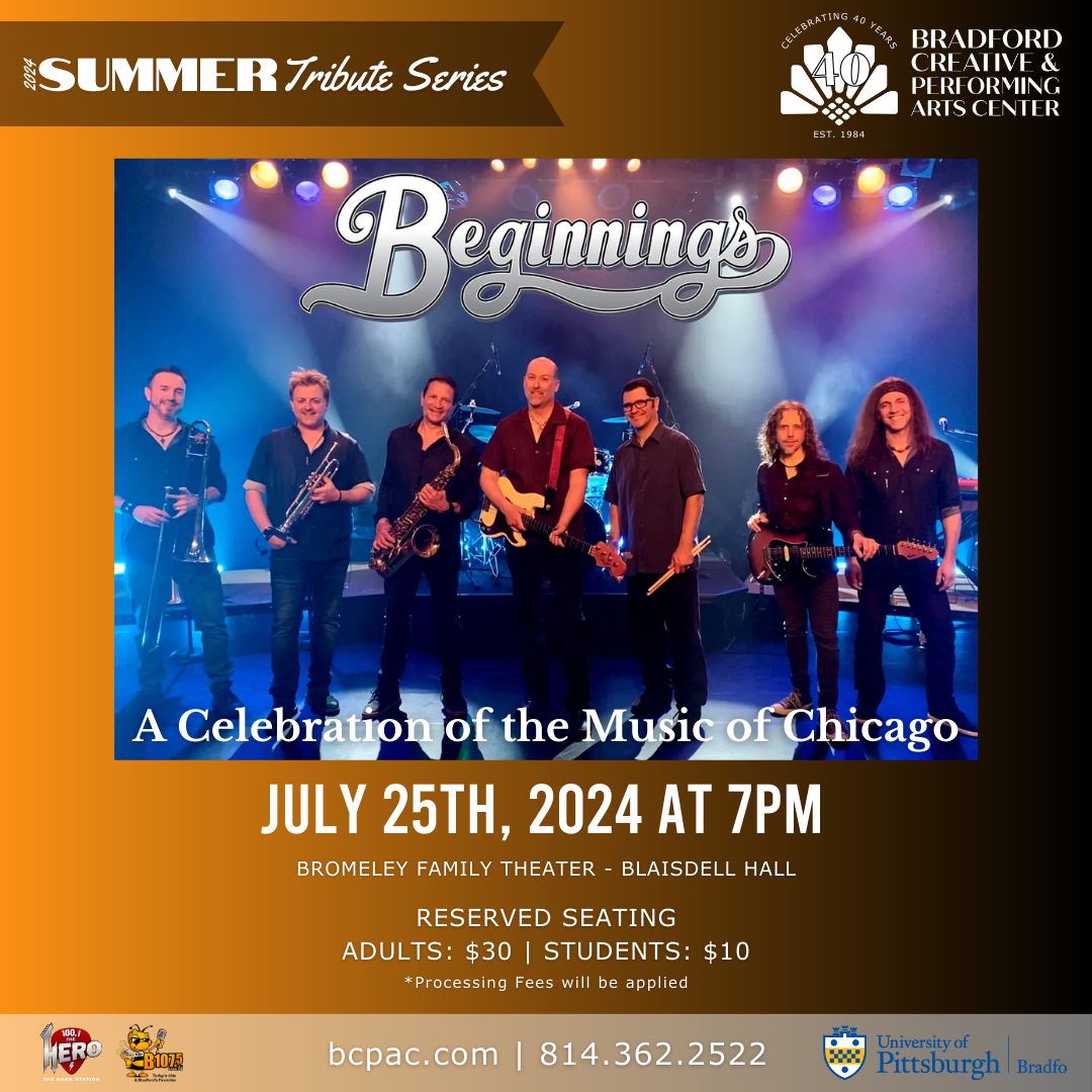 For ticket information and updates on events, be sure to follow BCPAC on Facebook and Instagram. You can also check out the website at www.bcpac.com, call 814-362-2522, or visit the ticket office at 119 Main Street in downtown Bradford.