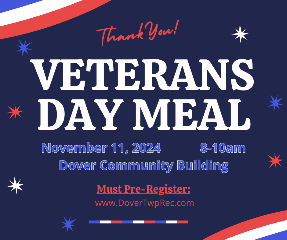Dover Township would like to thank all our Veterans by serving a free breakfast to all Veterans and their families. Please register at https://doverpa.myrec.com/info/activities/program_details.aspx?ProgramID=30053&AdminPreview=1