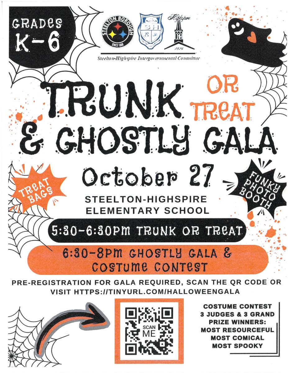 Calling all ghosts, goblins, and ghouls—join the Steelton-Highspire Intergovernmental Committee on Sunday, October 27th, from 5:30-8:00 PM for our Trunk or Treat & Ghostly Gala costume contest at Steelton-Highspire Elementary School!