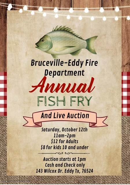 Event takes place at B-E fire station: 143 Wilcox Drive Eddy, Texas 76524