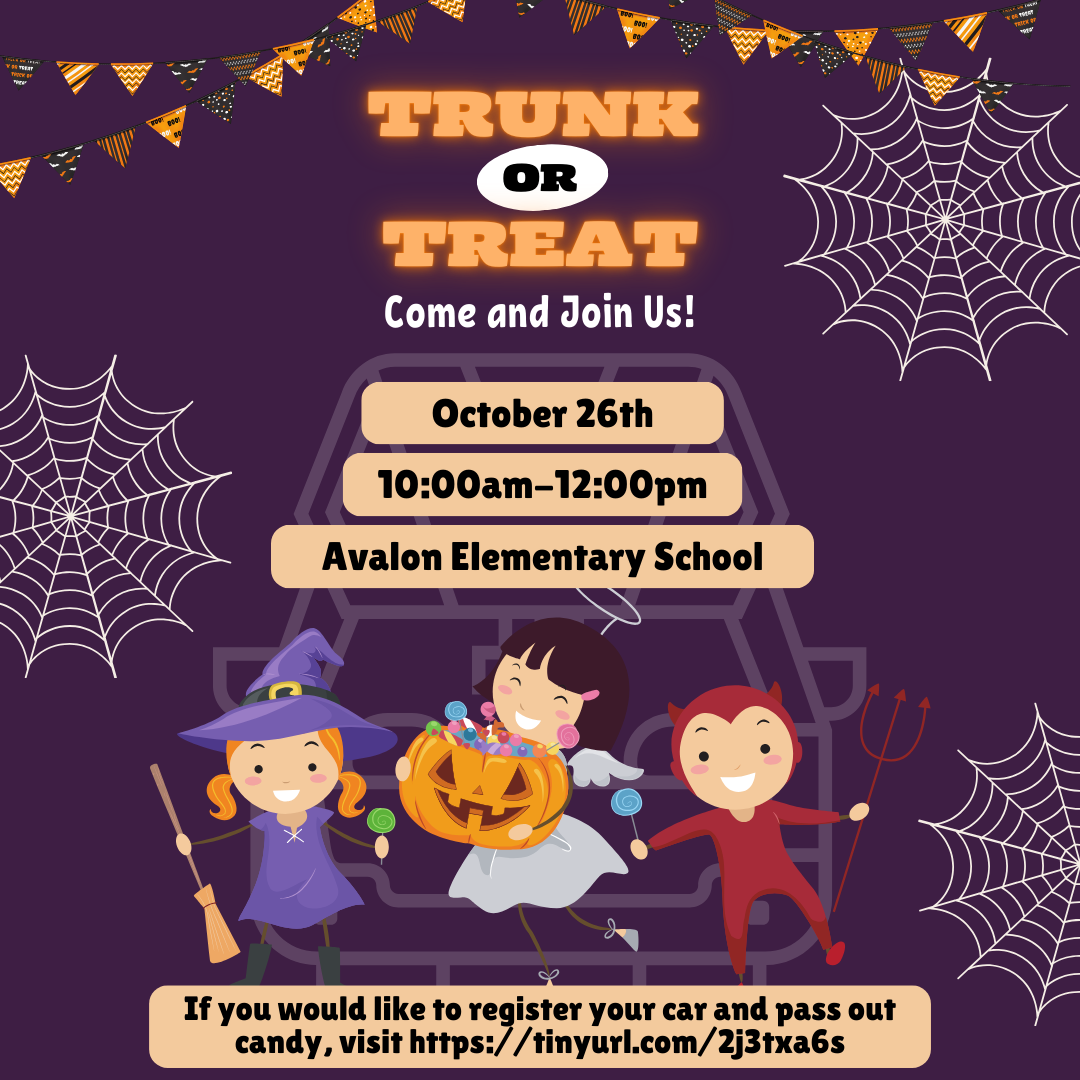 Happy Halloween! We look forward to seeing you at the third annual Avalon Trunk or Treat event.