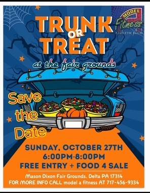 Trunk or Treat at the Mason-Dixon Fairgrounds on Sunday, October 27th, from 6-8pm.