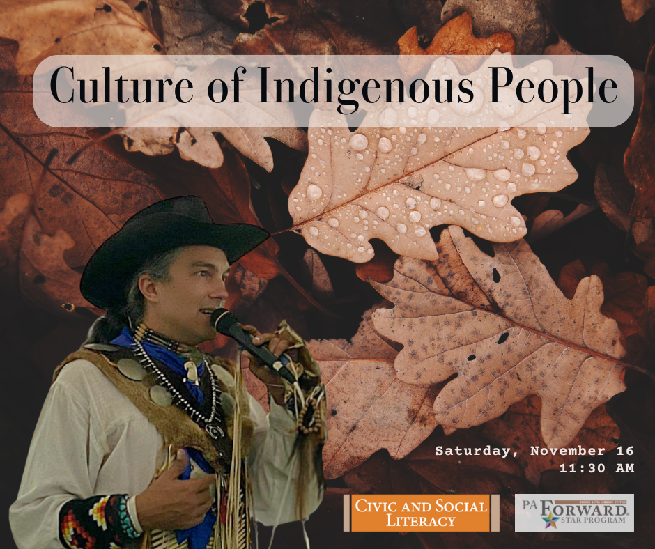 Join the mother - son team of Brenda and Lance White Eagle on Saturday, November 16 for an informative and engaging program, The Culture of Indigenous People.