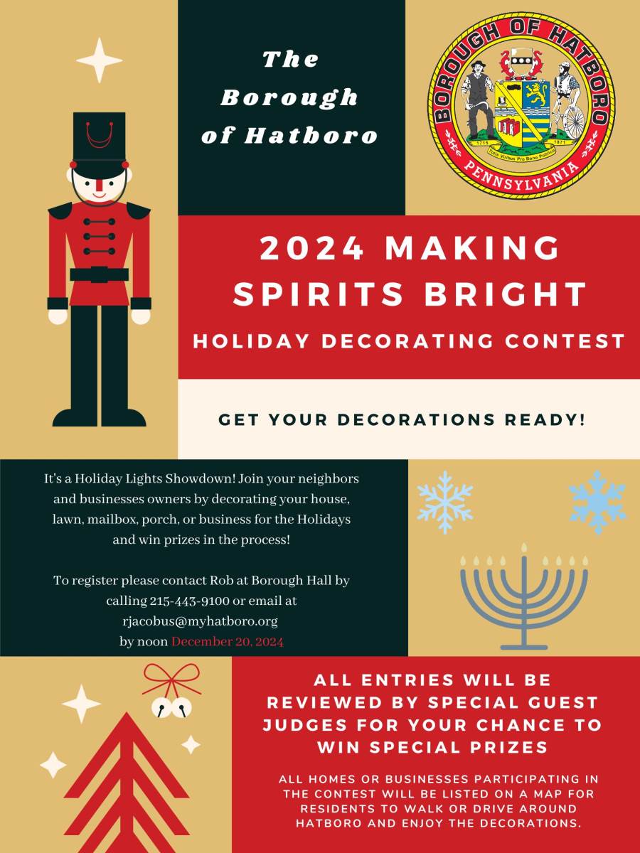 All homes or businesses participating in the contest will be listed on a map for residents to walk or drive around Hatboro and enjoy the decorations.