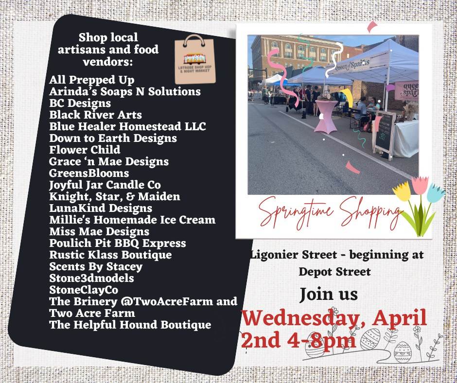 Due to the weather that left several businesses without power and the high wind advisory for this evening, the Latrobe Shop Hop & Night Market is cancelled this evening. We will see everyone next month.