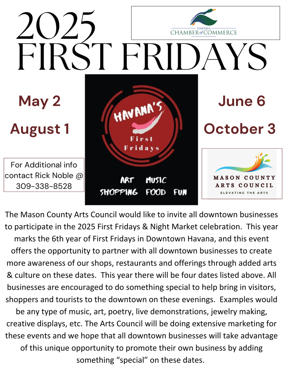 Havana's popular First Fridays is back for a 6th year! You have loved it every year and we are excited to host another year of art, music, shopping and fun in the historic downtown of Havana! This year First Fridays will be held in May, June, August and October. No First Fridays in July or September due to the July 4th holiday and our annual Havana Oktoberfest.