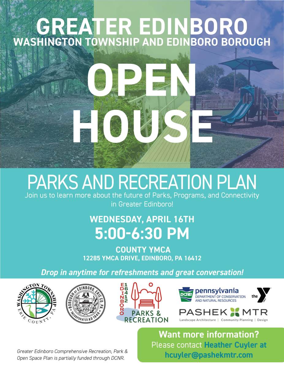 Join us to learn more about the future of Parks, Programs, and Connectivity in Greater Edinboro!