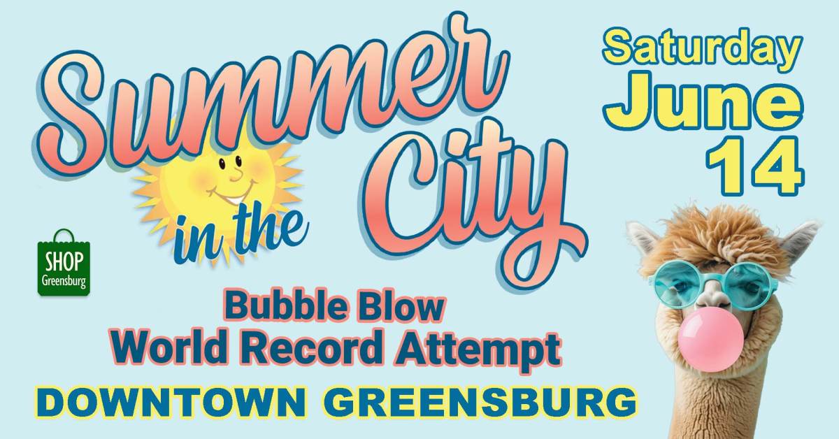 Join the Greensburg Business and Professional Association as they host 'Summer in the City'. This will include a bubble blow Guinness record attempt, food and craft vendors and other family friendly activities.
