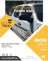 The Village of Volente is inviting you to attend a Community Town Hall hosted by the Travis County Sheriff’s Office on Monday, June 9, 2025.