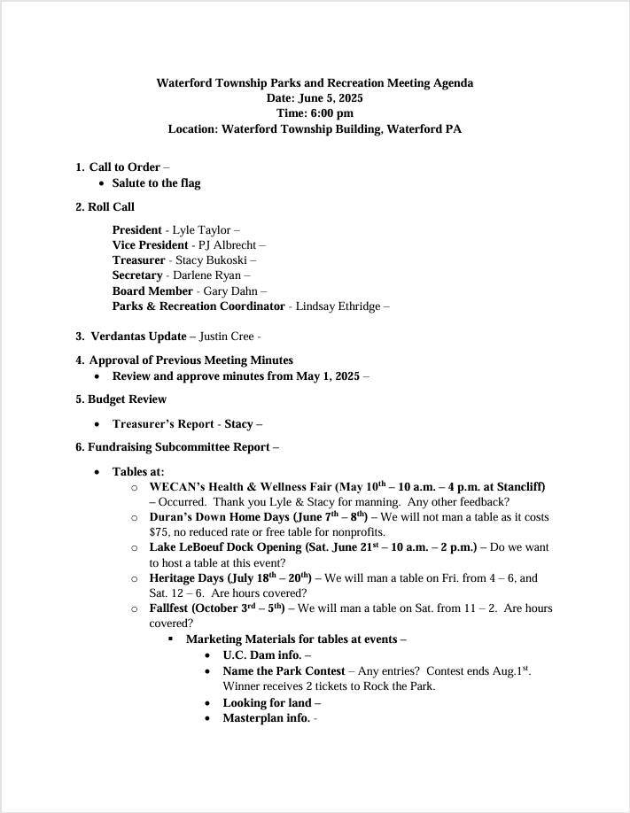 Join us as we design and create community parks for Waterford Township. The first Thursday of every month at 6:00 pm