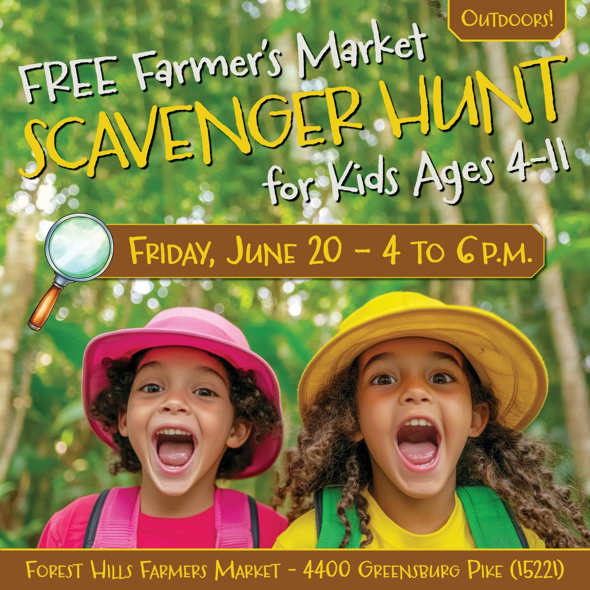 The Late Bloomer's Garden Club will be holding a Scavenger Hunt for kids ages 4-11 at the Farmer's Market on June 20th from 4-6 PM.