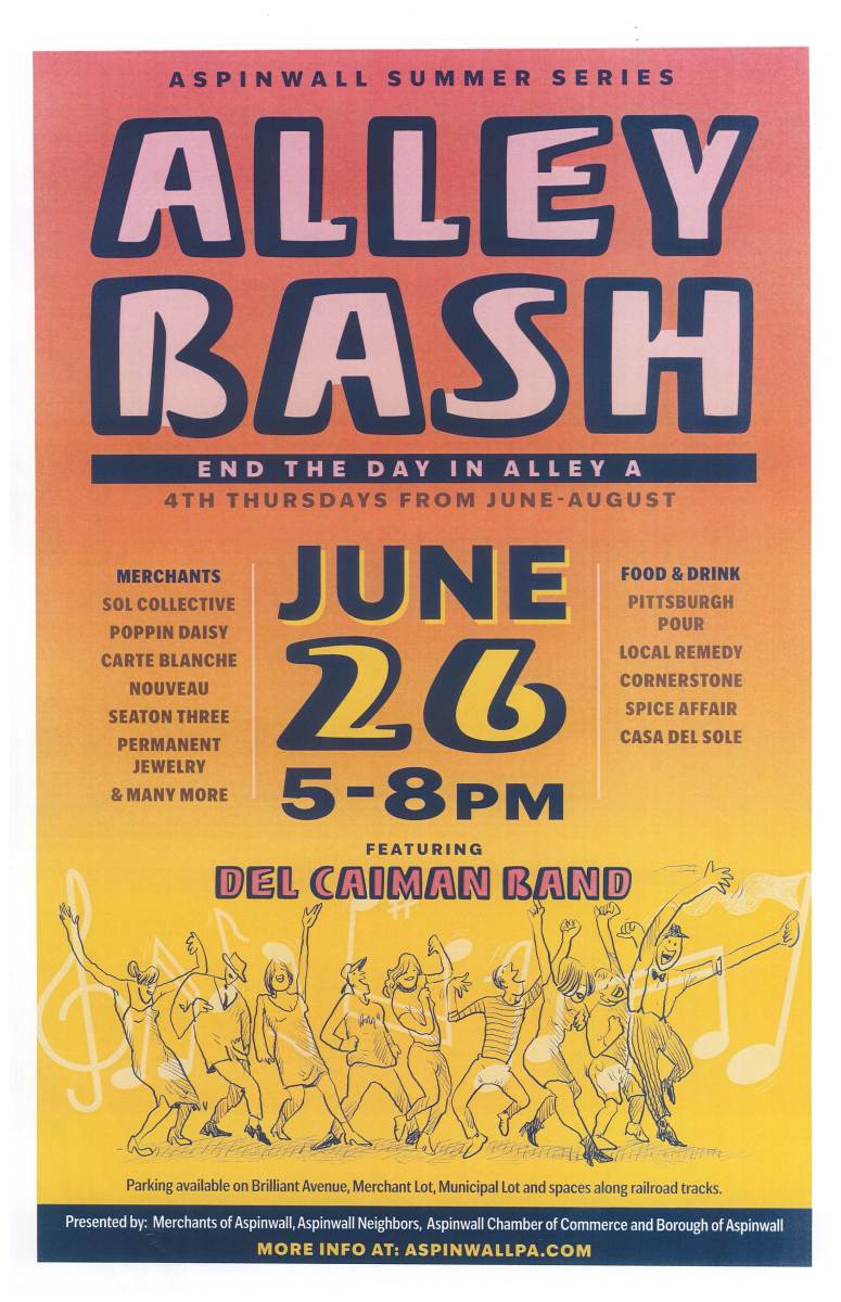 Join us for Aspinwall Alley Bash — a monthly celebration with live music, food and drinks from local restaurants and shopping in Aspinwall's Alley A!