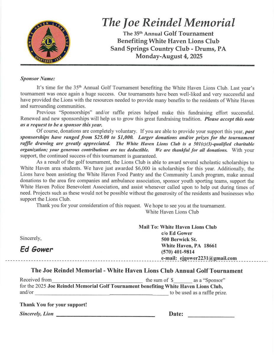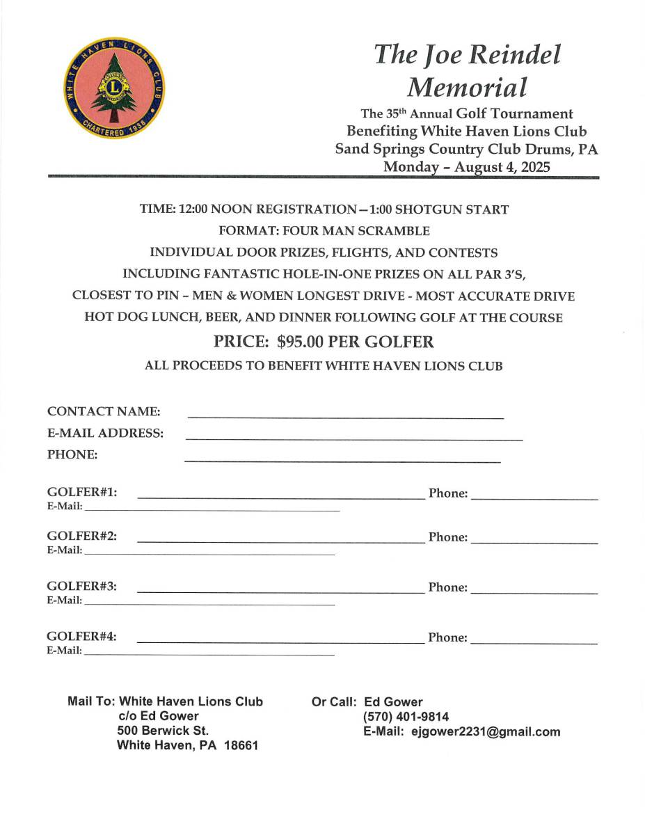 35th Annual Golf Tournament benefiting the White Haven Lions Club.