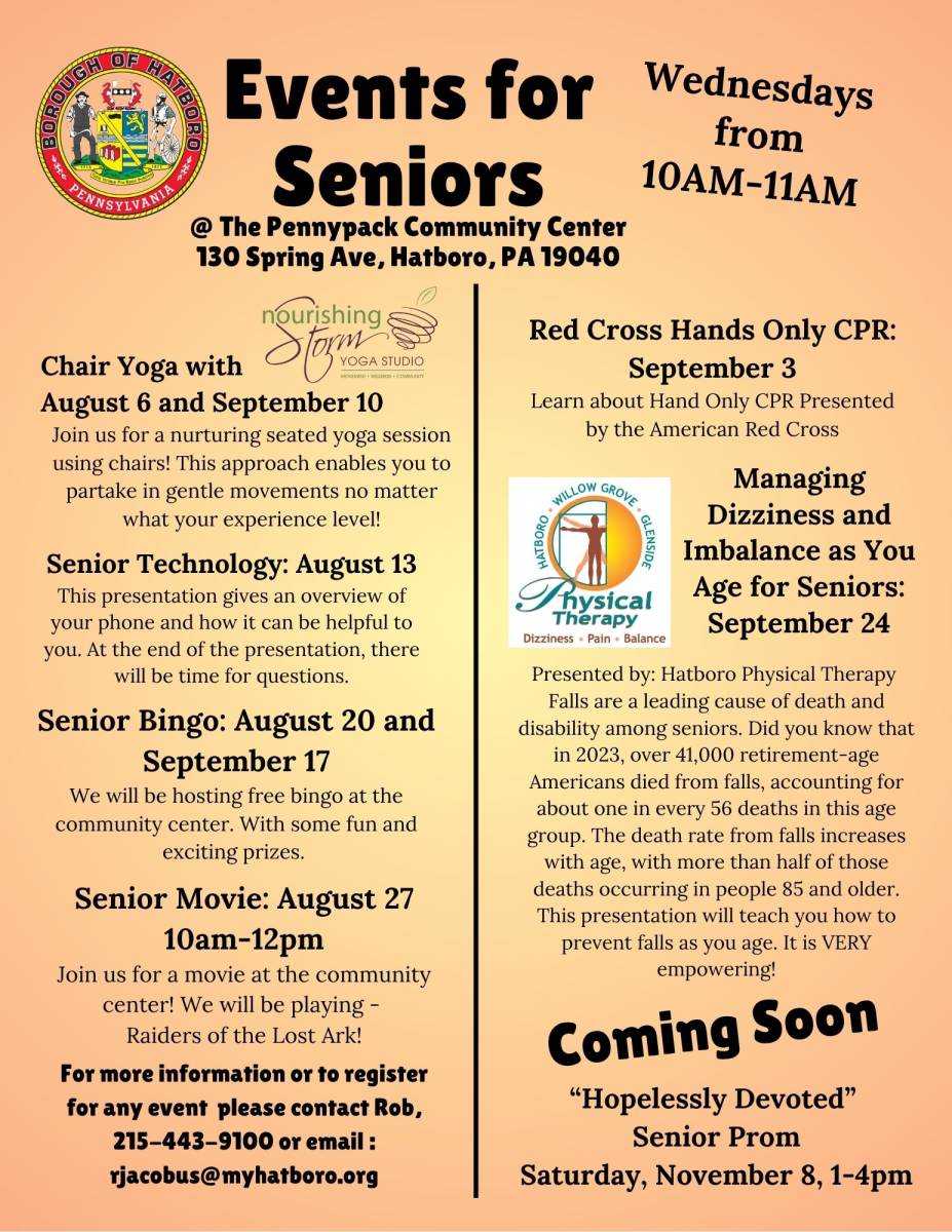 To Register please contact Rob at Borough Hall, 215-443-9100 or email rjacobus@myhatboro.org.