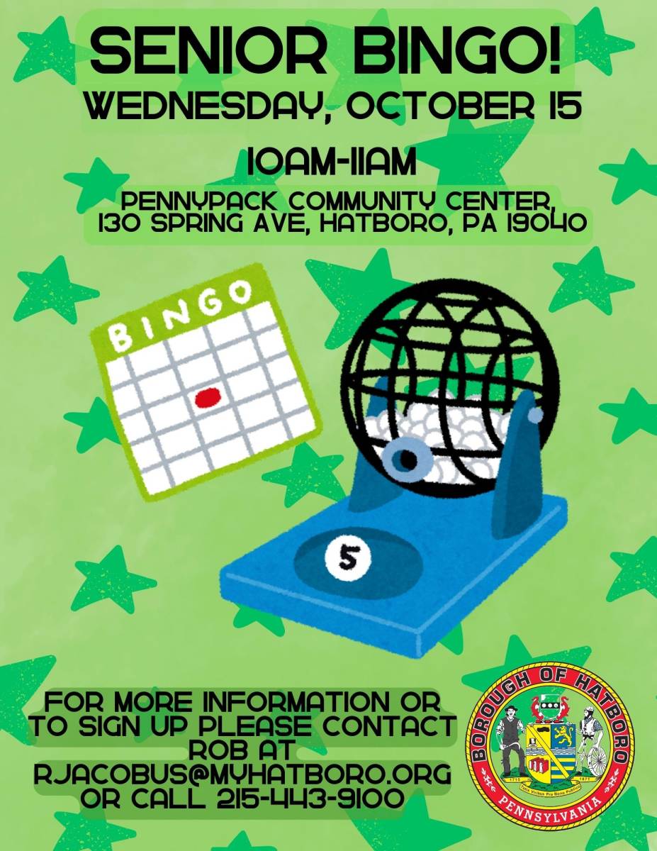 To Register please contact Rob at Borough Hall, 215-443-9100 or email rjacobus@myhatboro.org.