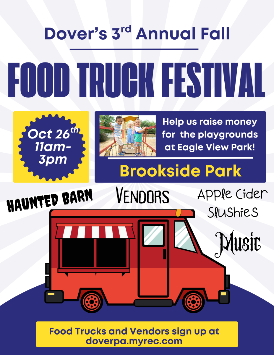 Come join us for Dover's 3rd Annual Fall Food Truck Festival! Held at Brookside Park on Oct 26th, from 11a-3p. Enjoy some great food & crafts all from local vendors!