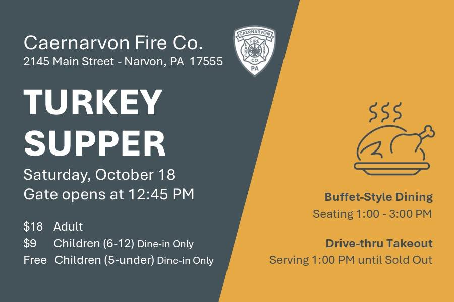 Please come out and support the Caernarvon Fire Co and get a delicious meal.