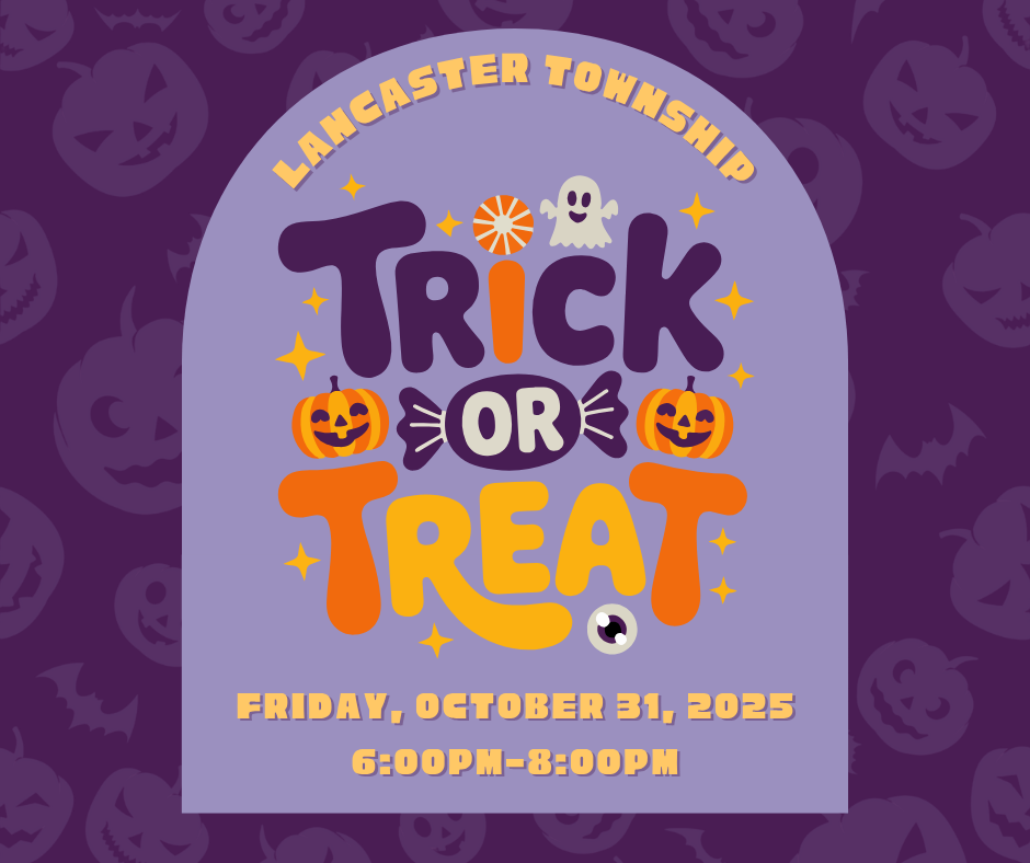 Lancaster Township's Trick-or-Treat will be on Friday, October 31st from 6:00pm-8:00pm.