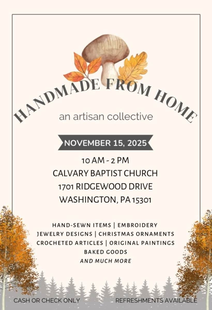On November 15, 2025, Calvary Baptist Church will host the "Handmade from Home" artisan collective event.