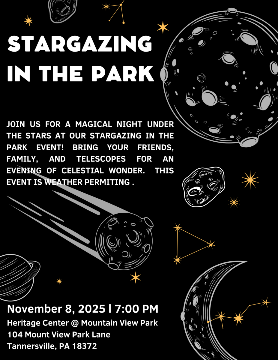 Join us for a magical evening beneath the stars! Bring your blankets, chairs, and sense of wonder as we explore the night sky together. Whether you're a seasoned stargazer or just curious about the cosmos, this peaceful night in nature is perfect for all ages.