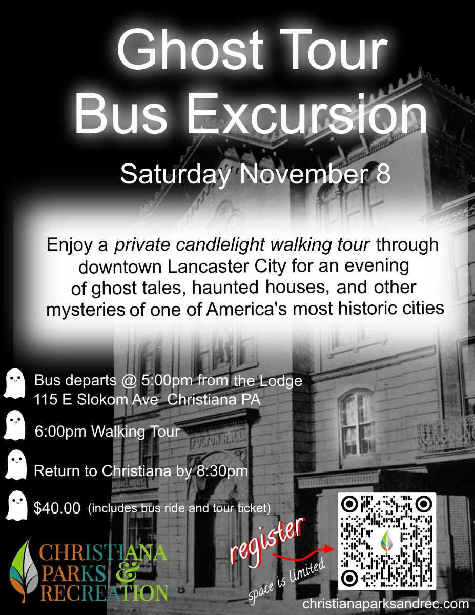 Please join the Christiana Parks and Recreation as they host a Ghost Tour Bus Excursion.