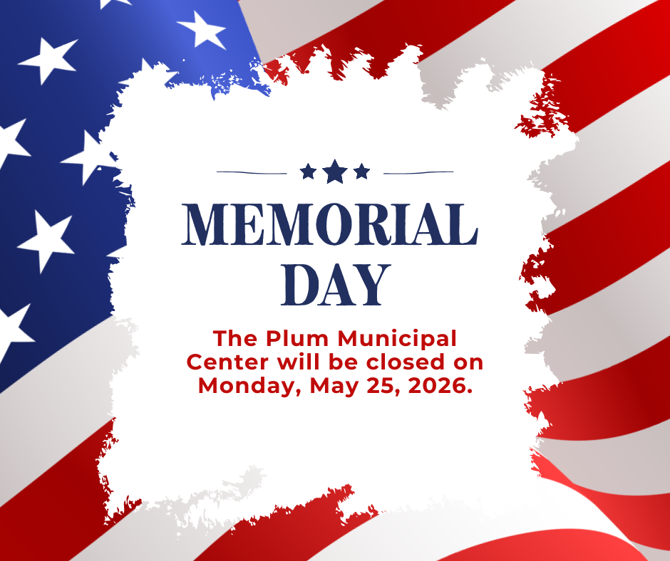 The Plum Municipal Center is closed for Memorial Day.
