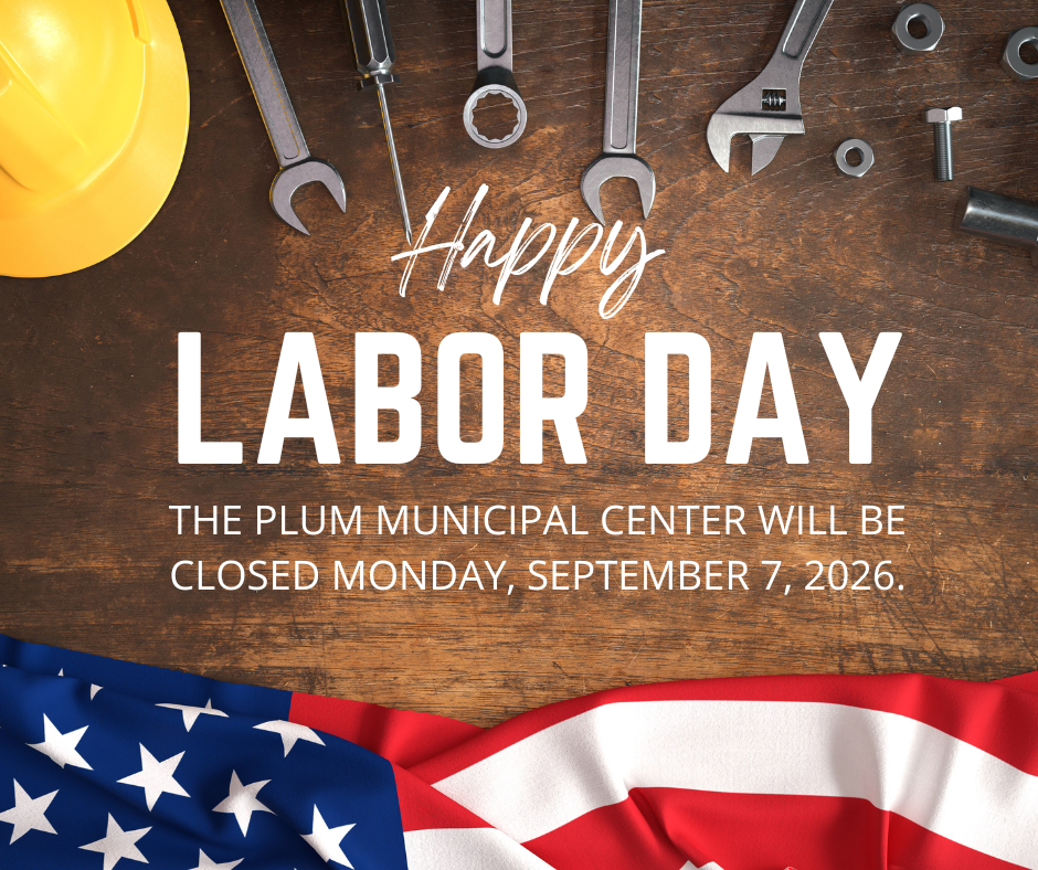 The Plum Municipal Center is closed for Labor Day on Monday, September 7,2026.