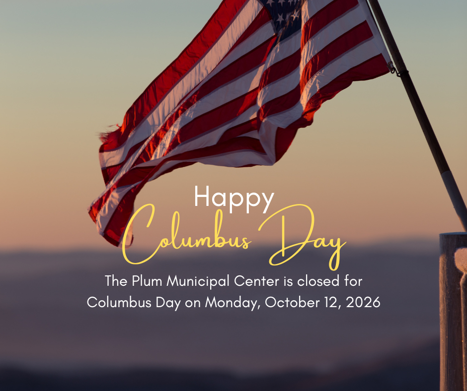 The Plum Municipal Center will be closed on Monday, October 12, 2026, in observance of Columbus Day.
