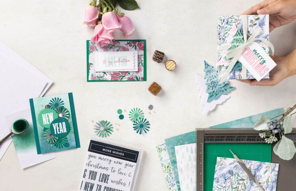 Choose from dozens of beautifully coordinated, unique custom kits you can assemble on your own or with assistance from our experienced papercrafters. All additional supplies and tools including scissors, a variety of glues, wipes to get the glue off your fingers, and additional embellishments are provided for you to use at the event.