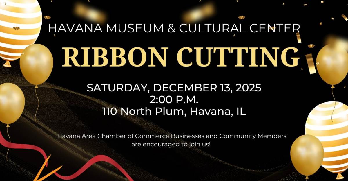 The Ribbon Cutting for the Havana Museum & Cultural Center will be held on Saturday, December 13, 2025 at 2 p.m. at 110 North Plum Street, Havana.