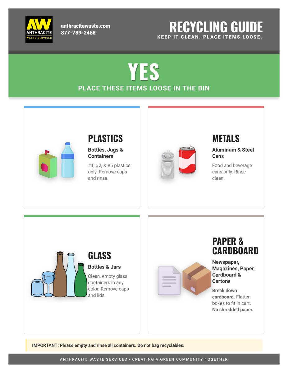 If you have any questions about the pick-up schedule, you may contact Anthracite directly at 877-789-2468. Thank you all for your understanding and patience and we wish everyone a Happy and Blessed New Year!