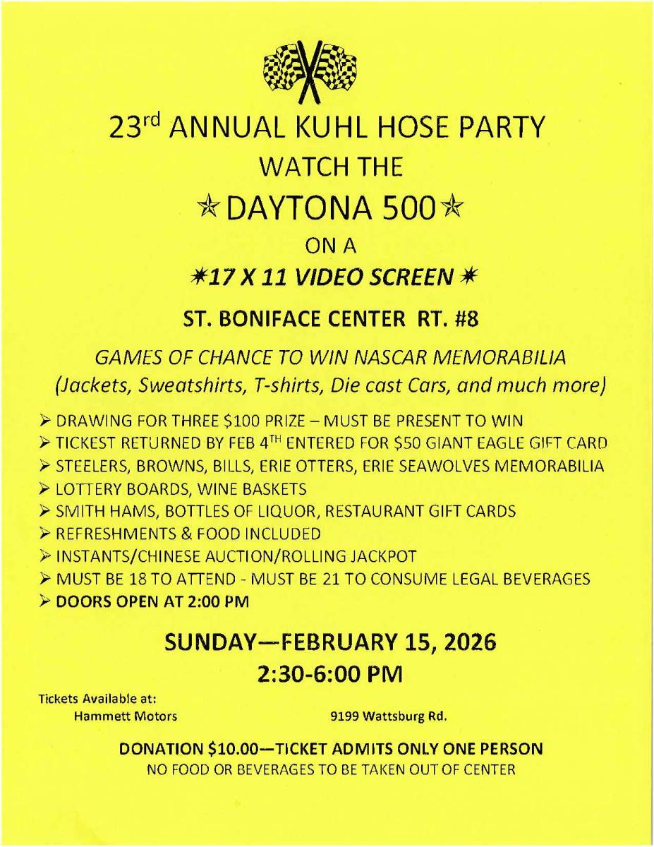 Watch the Daytona 500 on a 17 x 11 Screen, drawings, raffles, prizes, more.