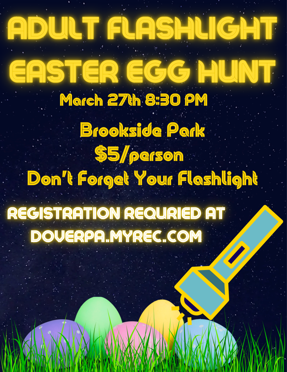 Egg Hunt is held at BROOKSIDE PARK (4054 Fox Run Rd.).