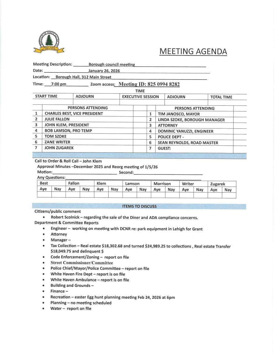 White Haven Borough Council Meeting
