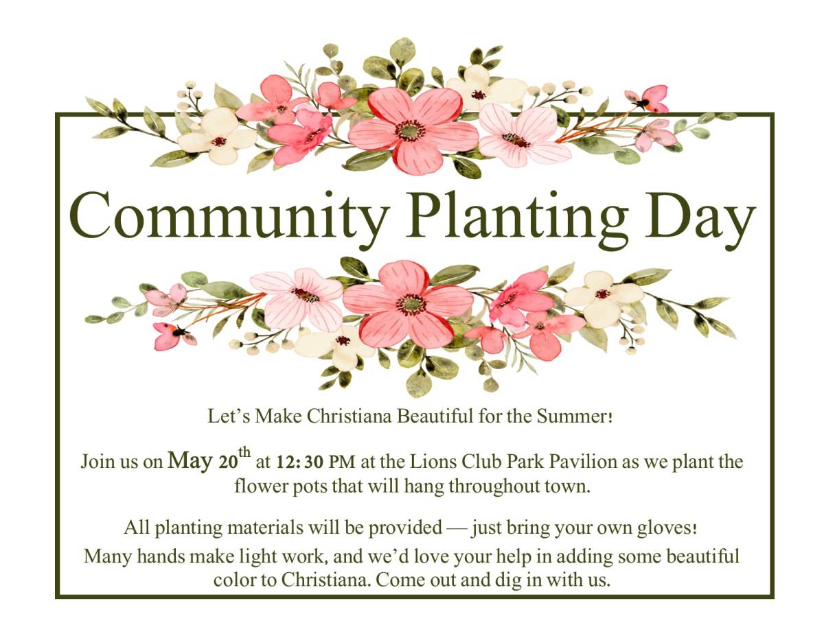 Many hands make light work, and we’d love your help in adding some beautiful color to Christiana. Come out and dig in with us.