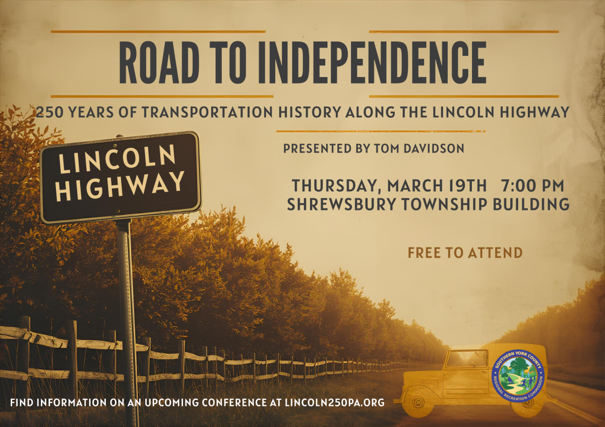The "Road to Independence" is presented by Tom Davidson, who currently serves as volunteer president for the PA Chapter of the Lincoln Highway Association, and a former volunteer board member with the Lincoln Highway Heritage Corridor. He is a PA native and has published research in the national Lincoln Highway Journal and speaks at community events on our Lincoln Highway history.