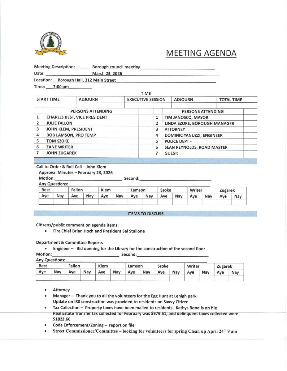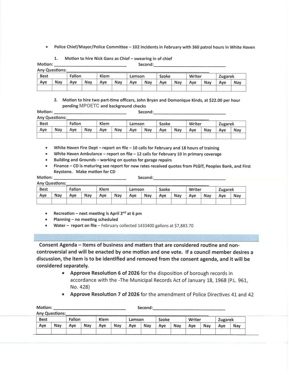 White Haven Borough Council Meeting