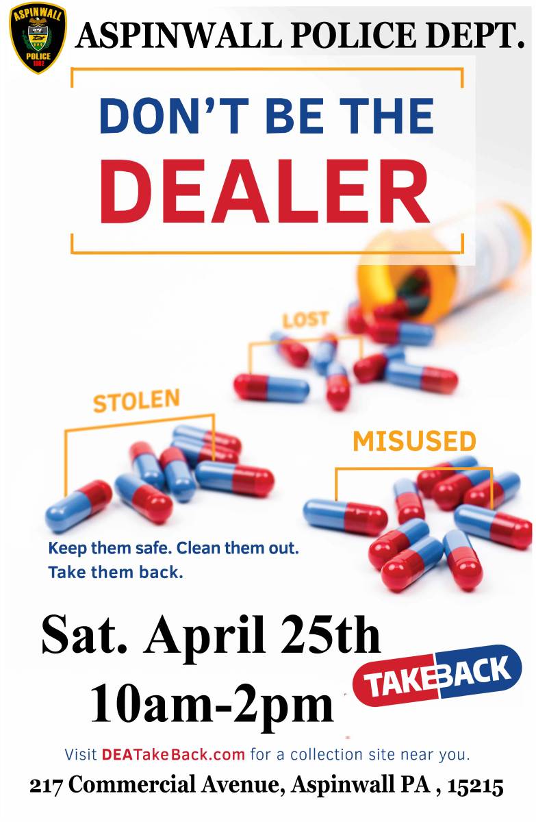 Unneeded prescription medication–those that are old, unwanted, or no longer needed – are a public safety issue, too often becoming a gateway to addiction. The majority of opioid addictions start with prescription pills found in medicine cabinets at home. Pharmaceutical drugs can be just as dangerous as street drugs when taken without a prescription or a doctor’s supervision. A majority of people who misuse a prescription medication obtained the medicine from a family member or friend. DEA’s National Prescription Drug Take Back Day events are one way to dispose of unneeded medications. Beyond Take Back Day, there are opportunities to regularly and safely dispose of unneeded medications at pharmacies, hospitals, police departments, and businesses working to clean out medicine cabinets throughout the year. For more information on prescription drug abuse, go to: • www.DEA.gov • www.GetSmartAboutDrugs.com • www.JustThinkTwice.com