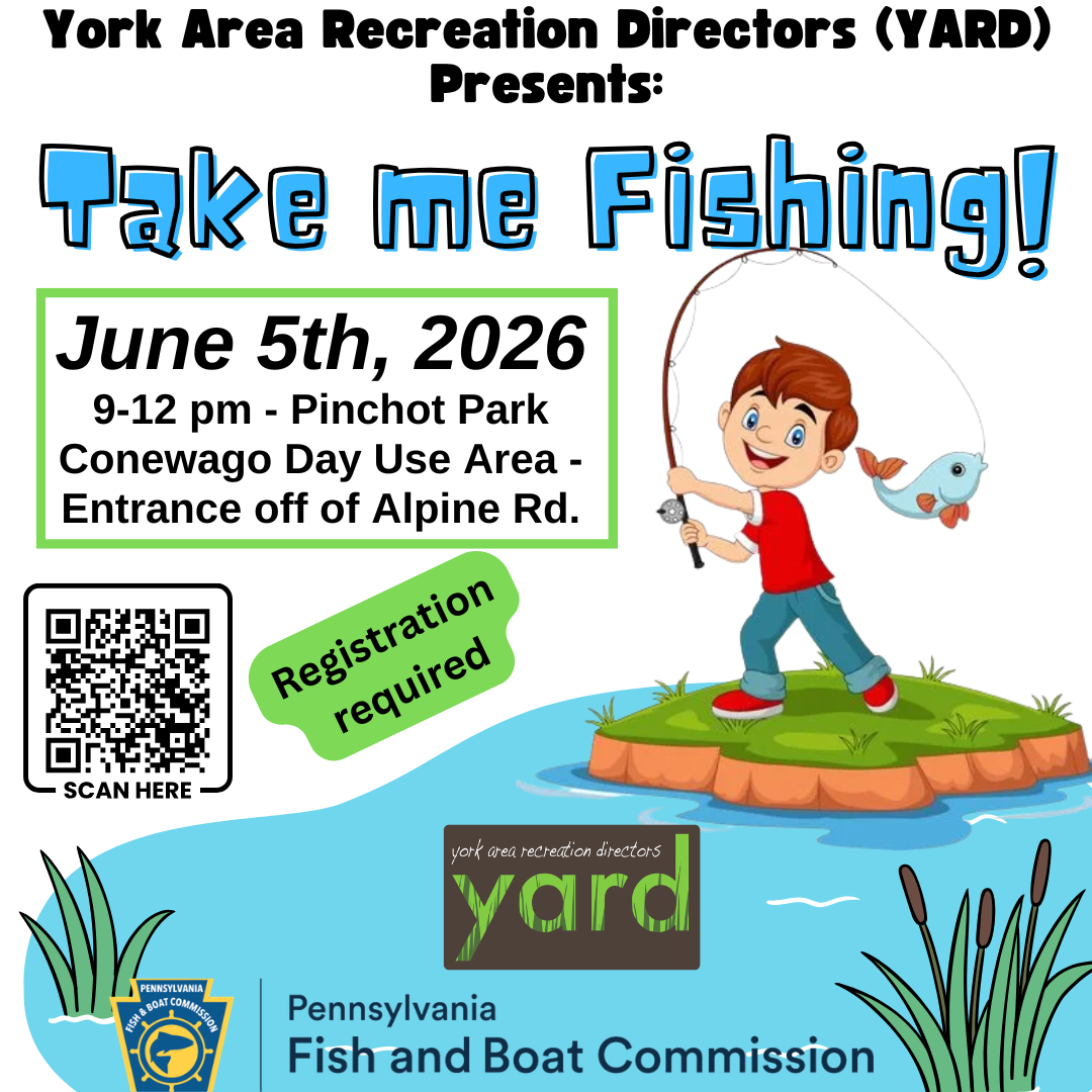 PA Fish and Boat Commission and YARD (York Area Recreation Directors) are offering this FREE program to provide an opportunity for families to enjoy time fishing together. No fishing license is required to attend this program and all of the fishing gear and bait is provided for the duration of the program. Local Waterways Conservation Officers (WCOs) will be on site to discuss the exciting aspects of their jobs and offer a rare opportunity to fish alongside the officers.